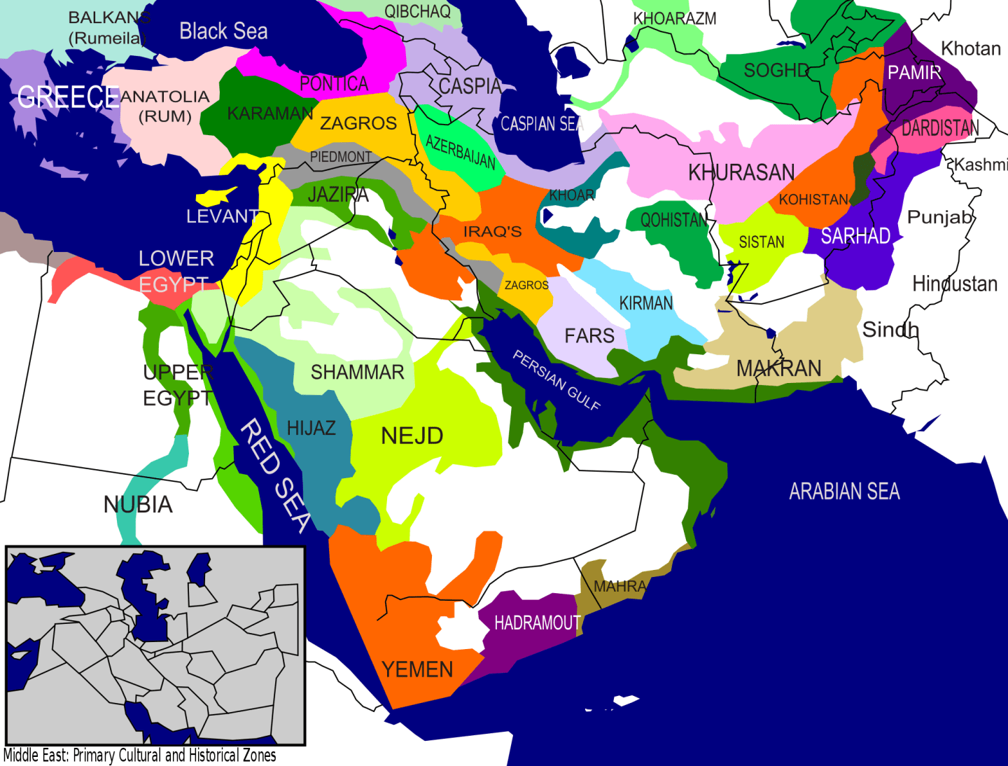 Featured Image: Middle East Cultural/Historical Map (WikiCommons)